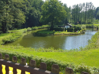 Unser Biergarten am Teich ist bei schönem Wetter geöffnet.